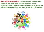 Да сме да Да сме толерантни, да проявяваме уважение, подкрепа, търпимост и разбиране към другите е посланието, което достигна до всяко дете.