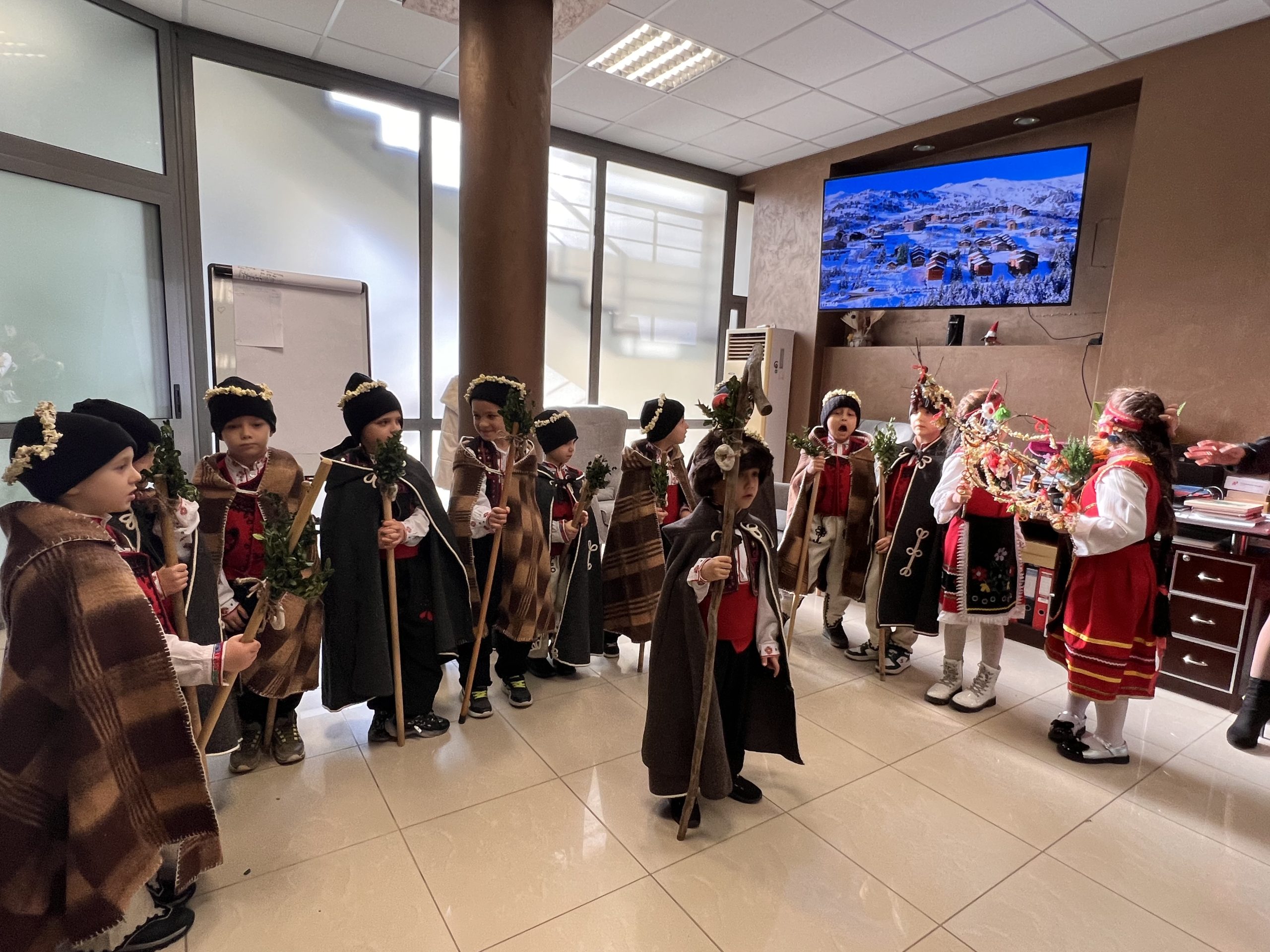 Днес малките коледари от група „Шарена дъга“ пресъздадоха обичая Коледуване и наричаха за здраве и берекет във фирмите „Автомагистрали – Черно море“ и „Хикс“.